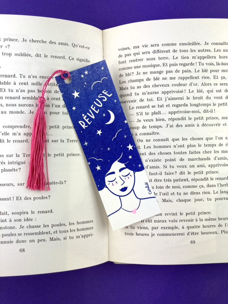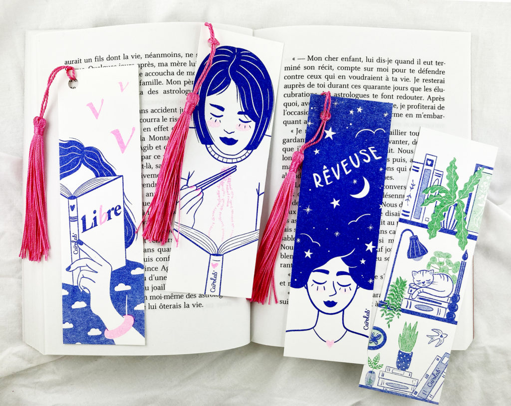 Série de marque-pages colorés et poétiques pour vous accompagner dans vos instants de détente. Imprimés en risographie en touraine avec une encre rose fluo ! Bonne lecture 😉