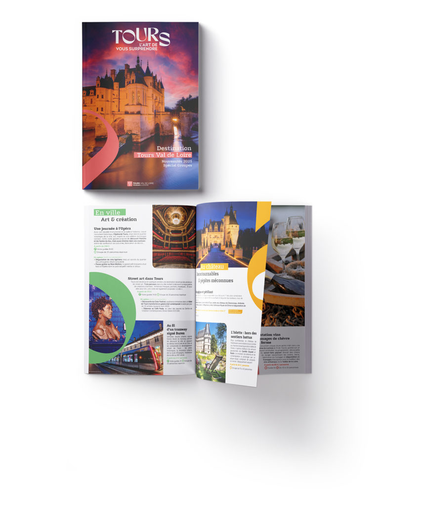 Mise en page de guides touristiques pour l’office de tourisme Tours Val de Loire